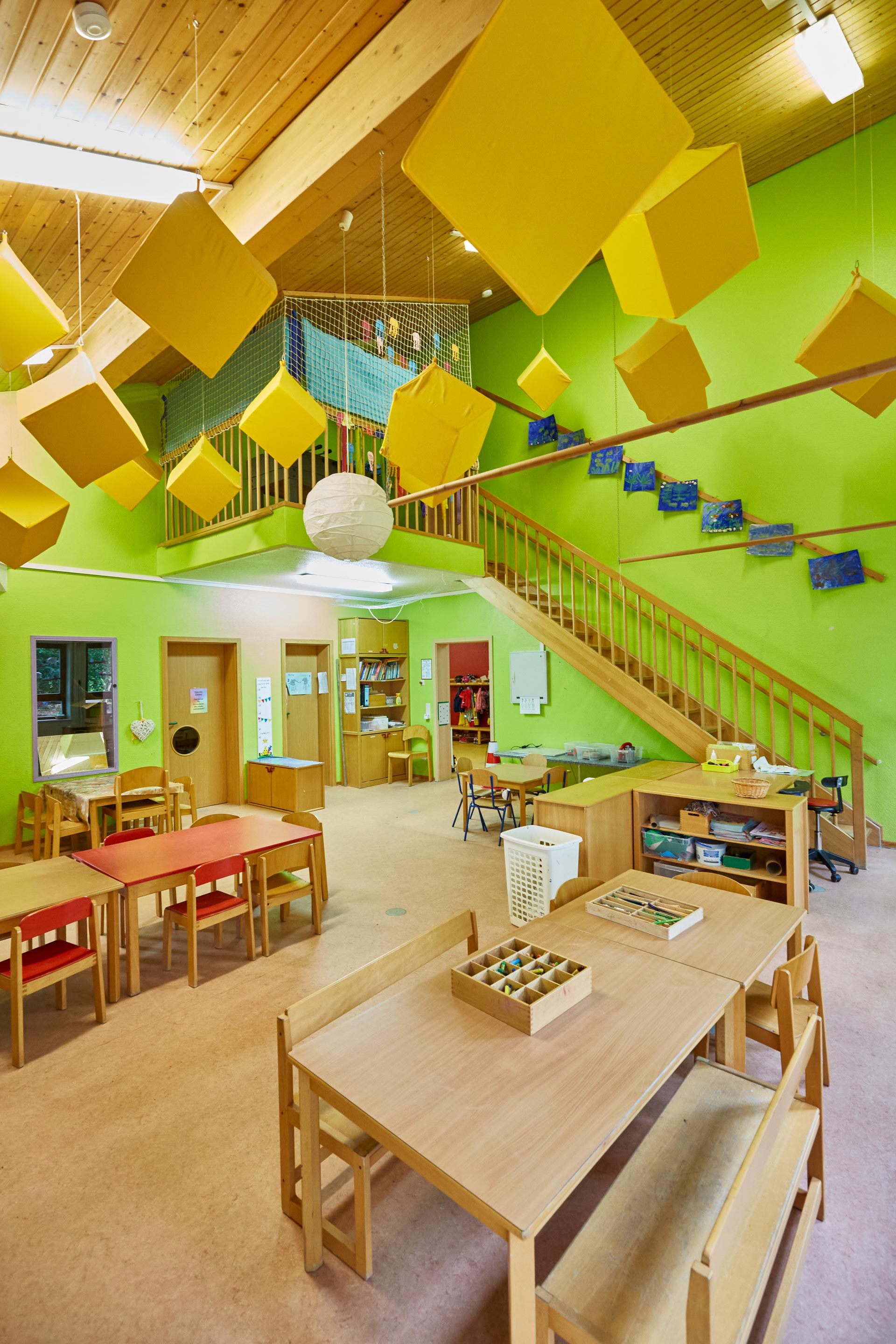 Unsere Kita arbeitet nach dem offenen Konzept. Die Kinder nutzen verschiedene Funktionsräume. Wie z.B. den Frühstücksraum, das Atelier, den Rollenspielraum, den Konstruktionsbereich und den Bewegungsraum. Dort können sie selbstständig tätig sein, spielen und sich frei bewegen. Die jüngeren Kinder verbringen ihren Tag in der Nestgruppe mit ruhiger, familiärer Atmosphäre. Unsere „Größten“, die Hortkinder, haben eigene Räume mit altersgerechtem Material.