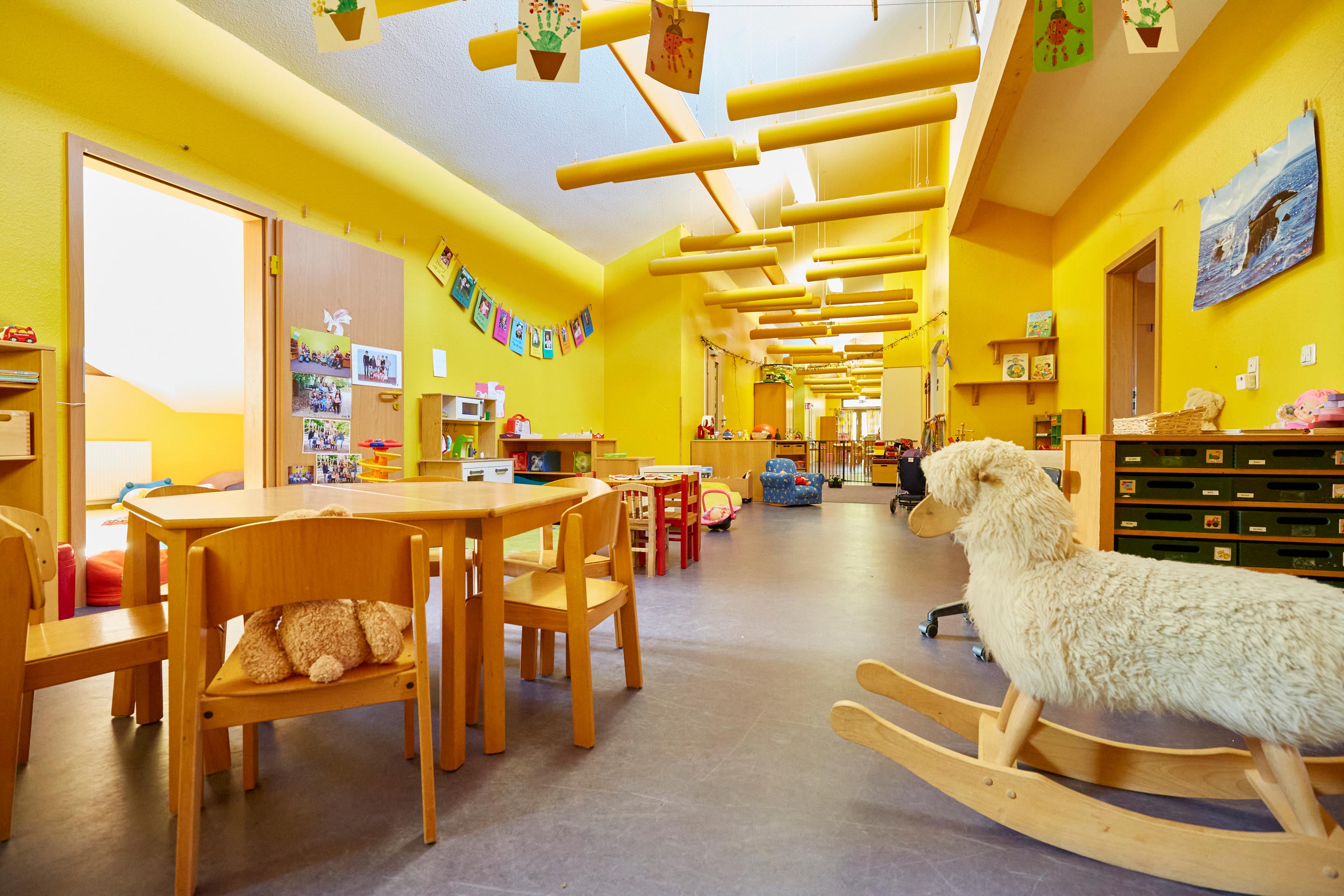 In unserer familiären protestantischen Kindertagesstätte (Kita) begleiten wir Kinder in der Krippengruppe, in zwei offenen Kindergartengruppen und im Hort beim Aufwachsen vom Kleinstkind bis zum Schulkind. Wir nehmen Kinder in ihrer Vielfalt, aber auch Eltern und Mitarbeitende so an, wie sie sind. Die Eltern haben die Möglichkeit, z.B. während der Eingewöhnungszeit, in unserer gemütlichen Sitzgruppe im Personalraum bei einem leckeren Kaffee zu verweilen.