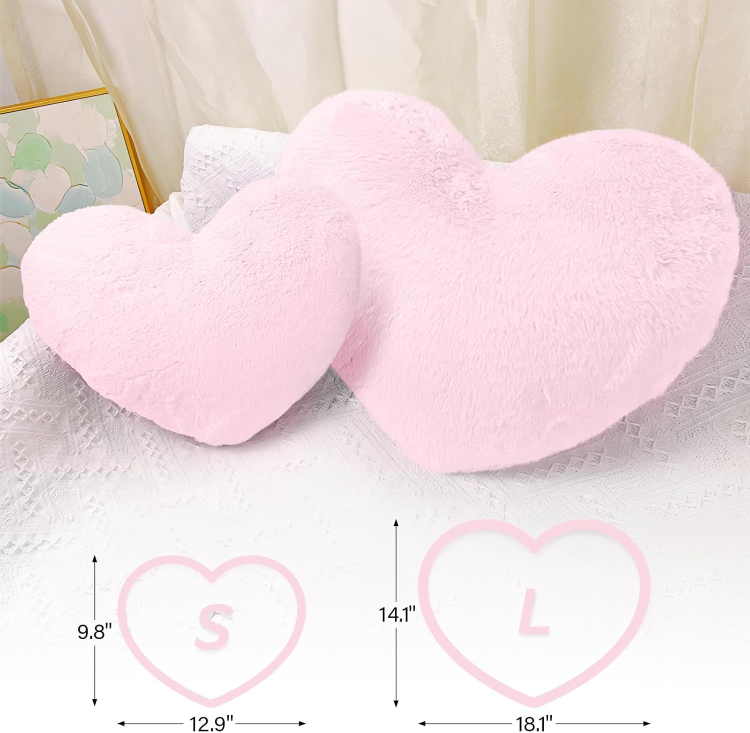 Our cute heart-shaped pillow is made of safe and comfortable materials, easy to clean, and very durable Provide you with a better soft and comfortable using experience.This soft love throw pillow is perfect for giving to your lovers,friends, or kids on Valentine's Day wedding anniversary birthday etc.Notes:Please allow slight errors on size.The color may exist a slight difference due to different screen displays.