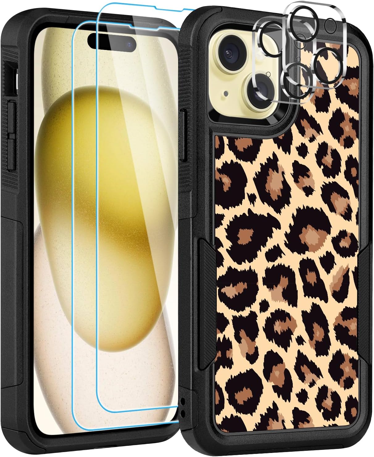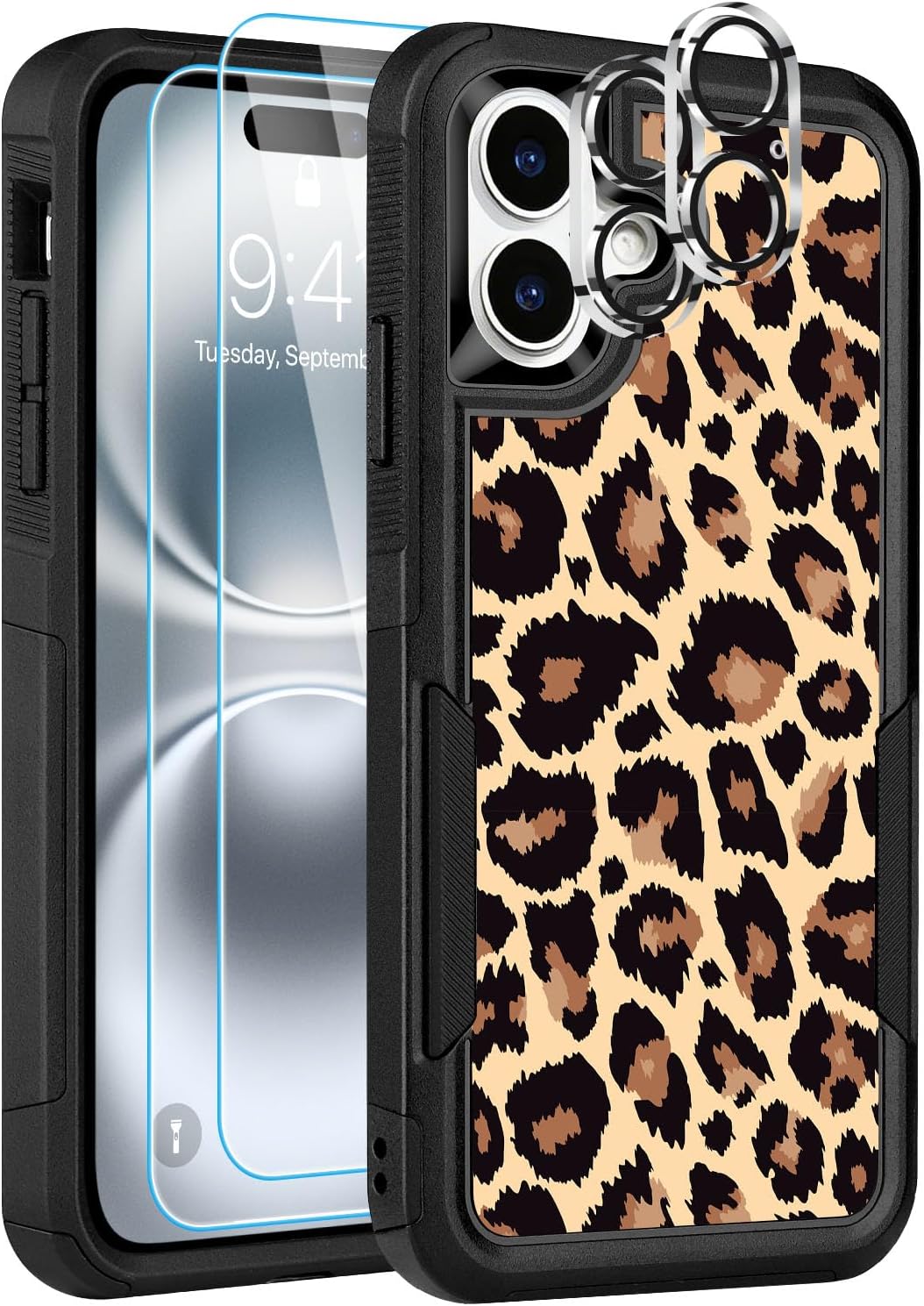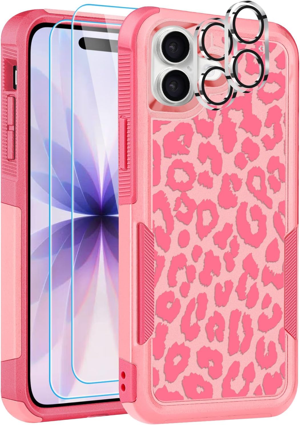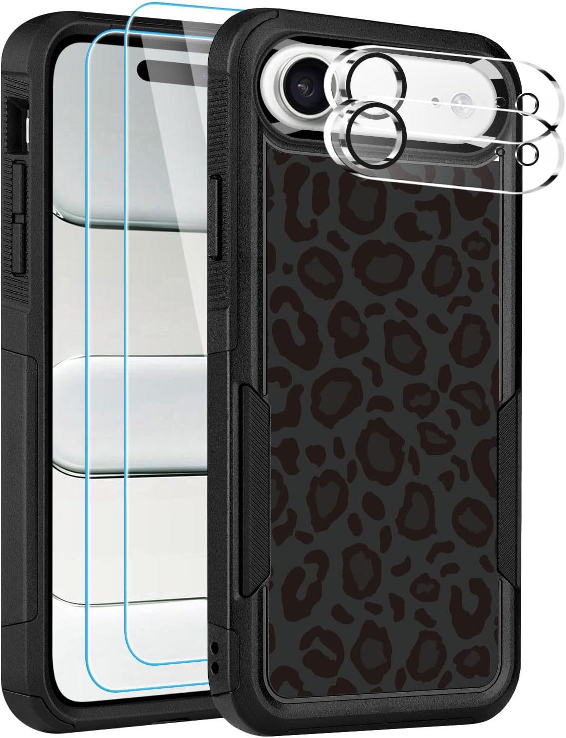 Designed for iPhone 17 Case, with 2 Pack Screen Protector + 2 Pack Camera Lens Protector,Heavy-Duty Tough Rugged Lightweight Slim Shockproof Protective Case for iPhone 17 6.3 Inch,Women Girls,Cheetah Leopard Pattern