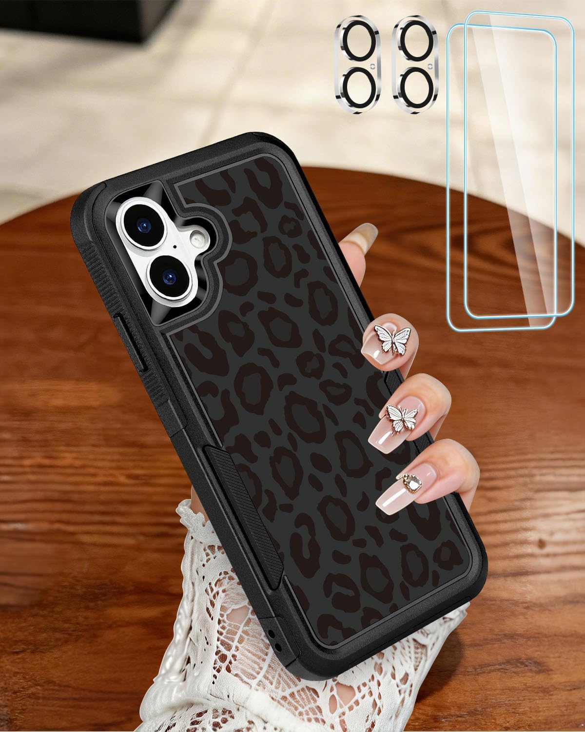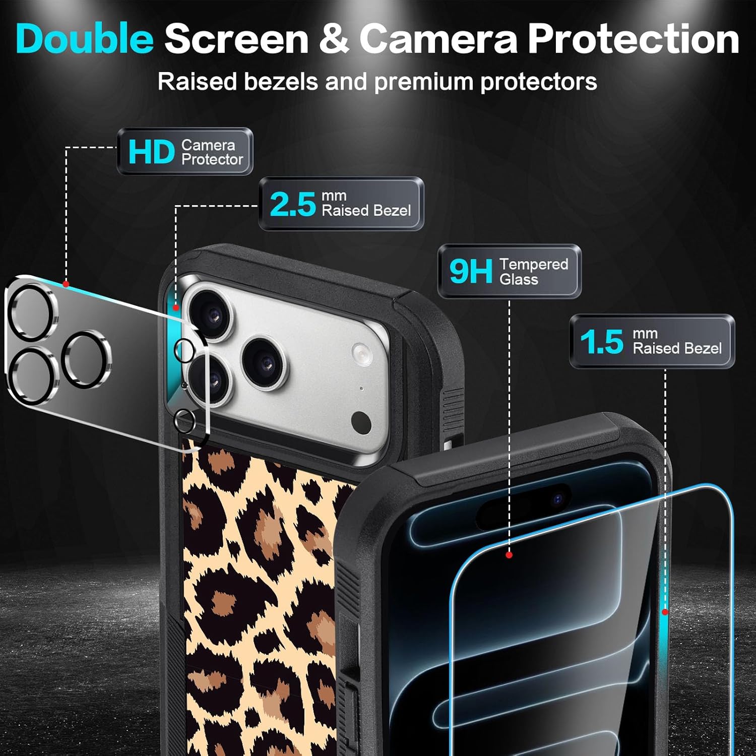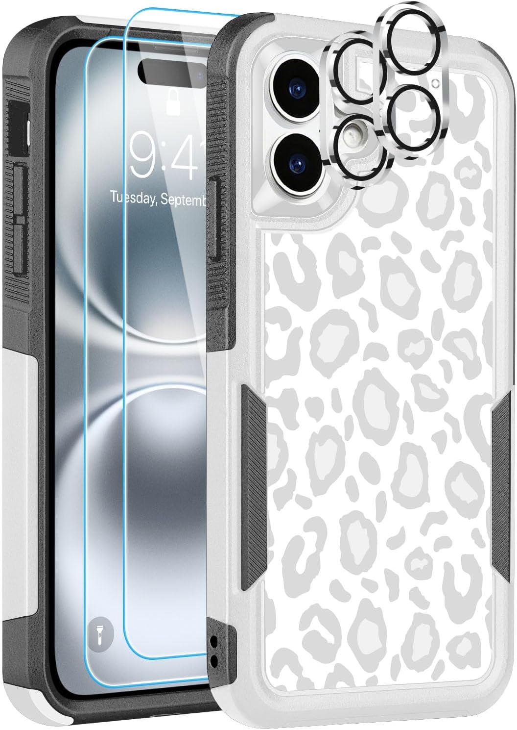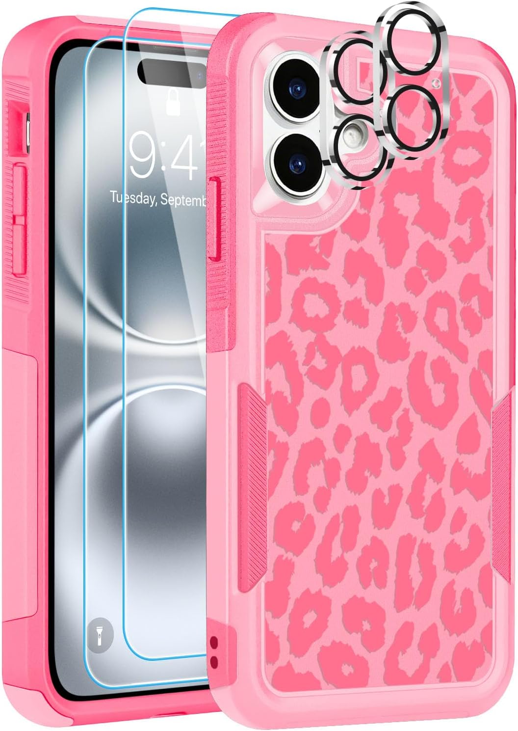 Designed for iPhone 17 Case, with 2 Pack Screen Protector + 2 Pack Camera Lens Protector,Heavy-Duty Tough Rugged Lightweight Slim Shockproof Protective Case for iPhone 17 6.3 Inch,Women Girls,Cheetah Leopard Pattern