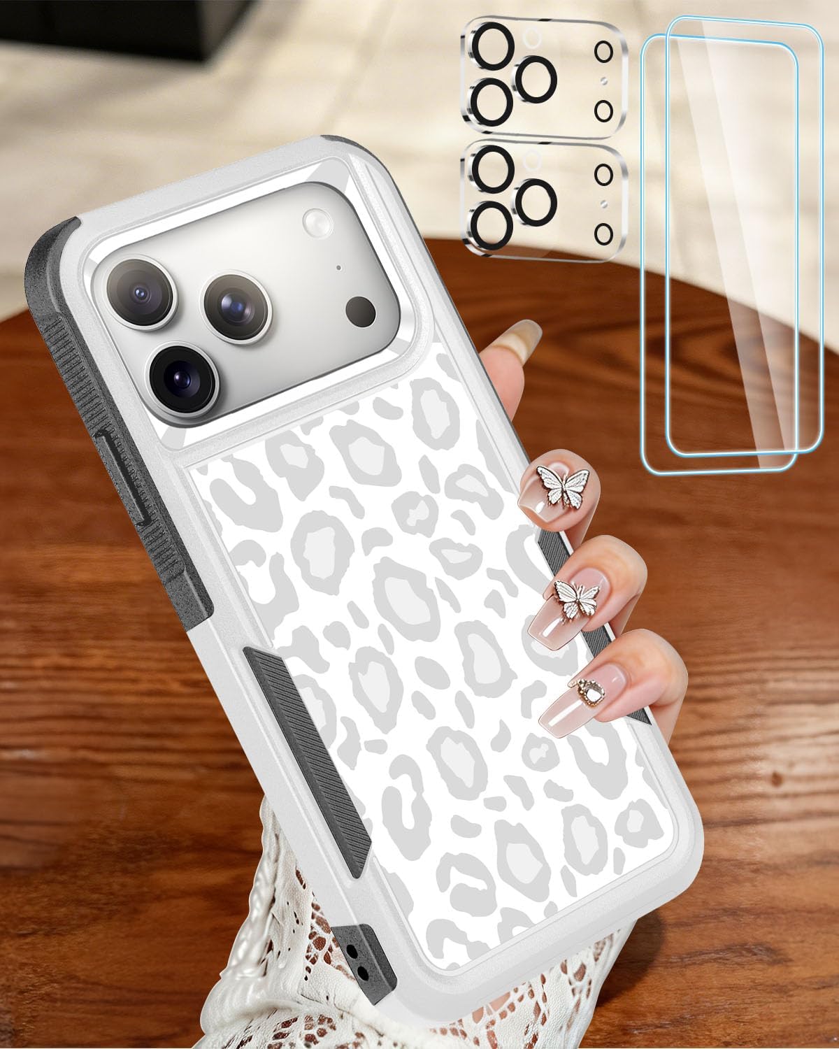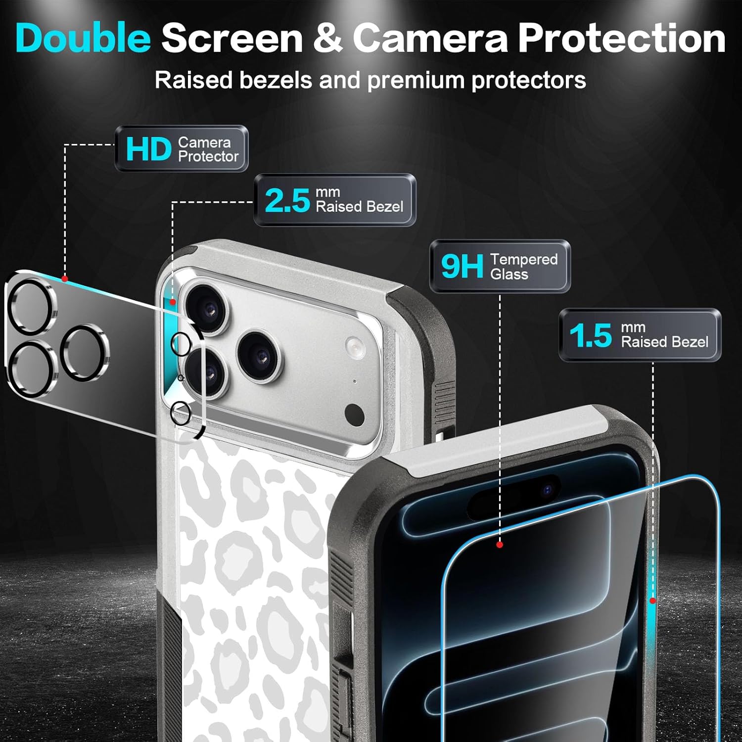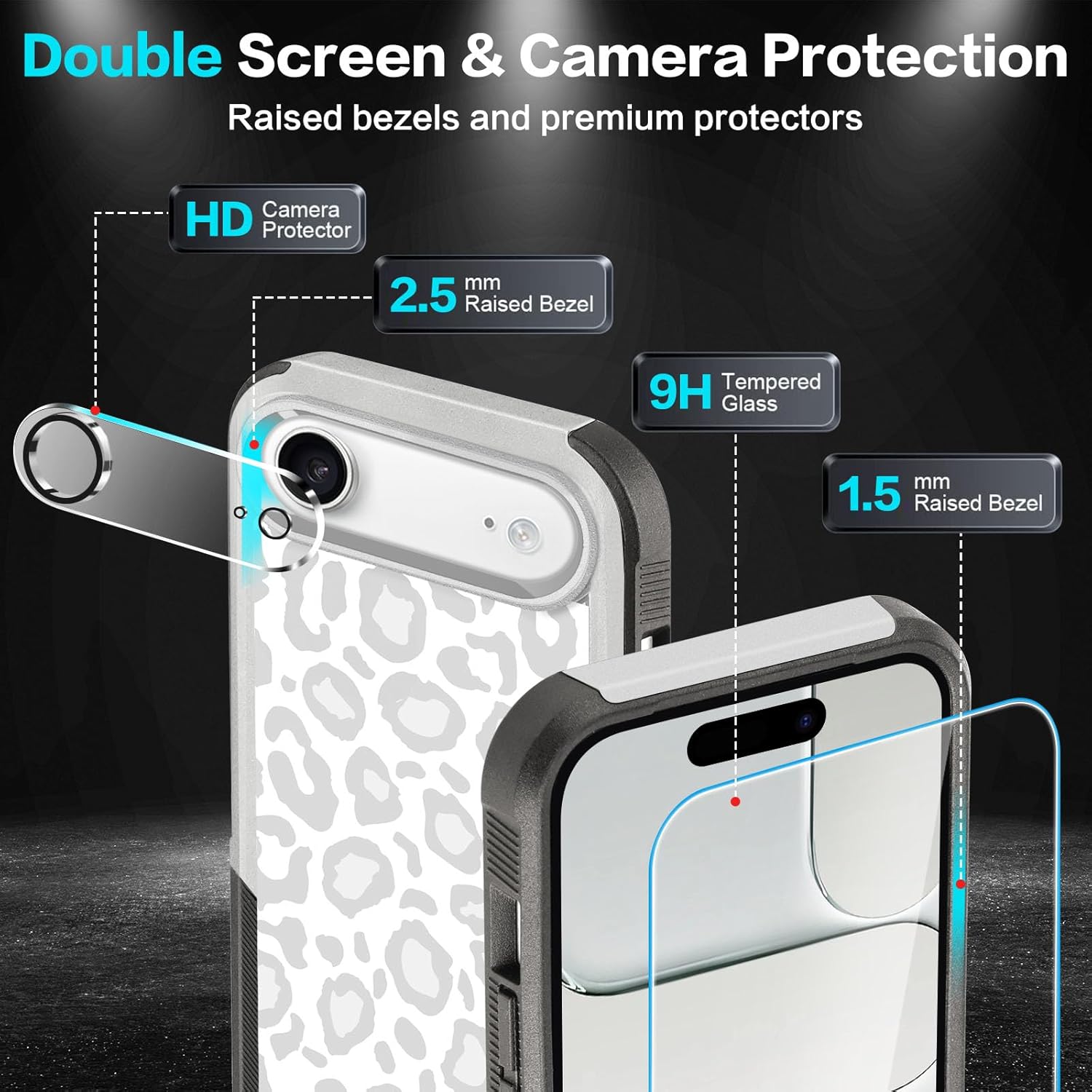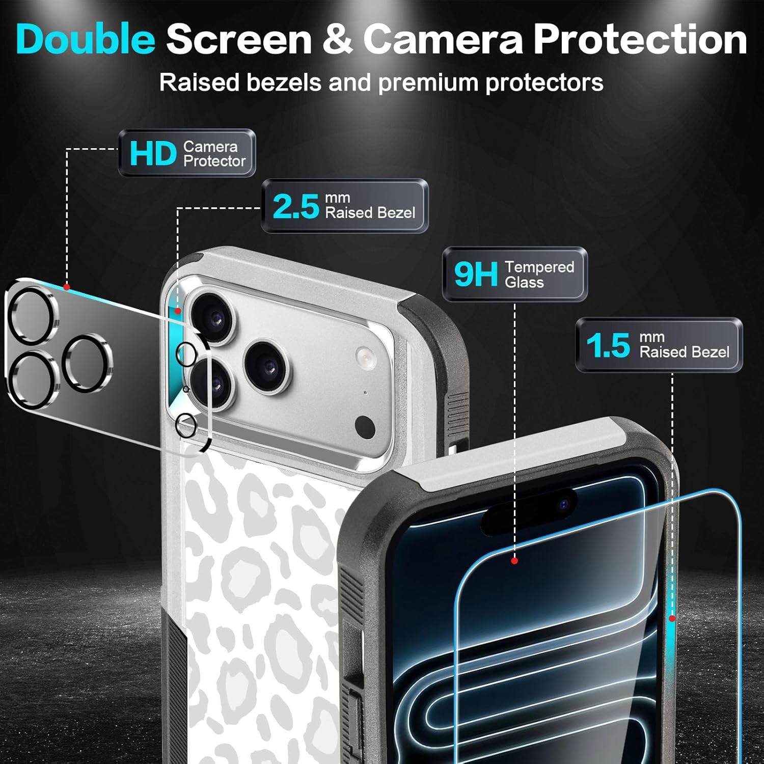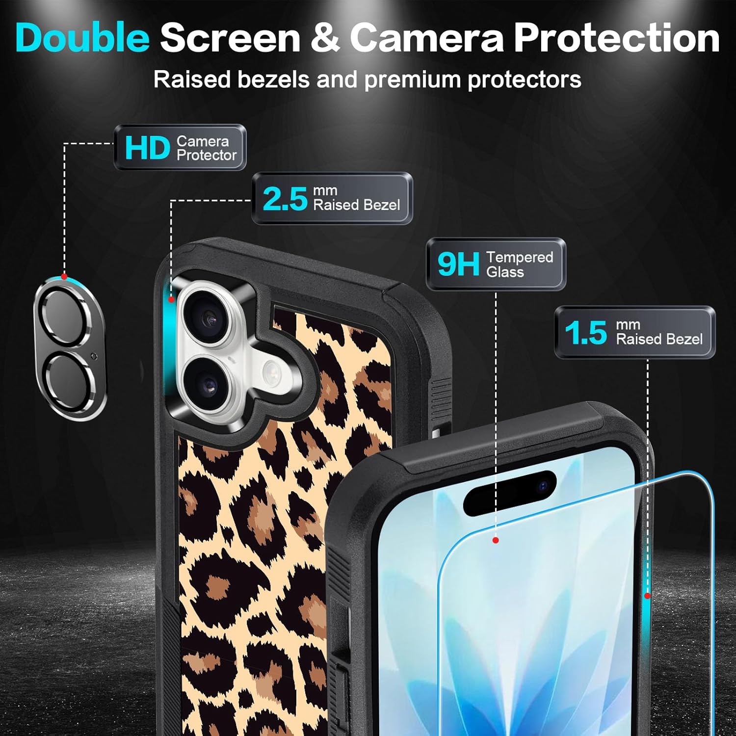 Designed for iPhone 17 Case, with 2 Pack Screen Protector + 2 Pack Camera Lens Protector,Heavy-Duty Tough Rugged Lightweight Slim Shockproof Protective Case for iPhone 17 6.3 Inch,Women Girls,Cheetah Leopard Pattern