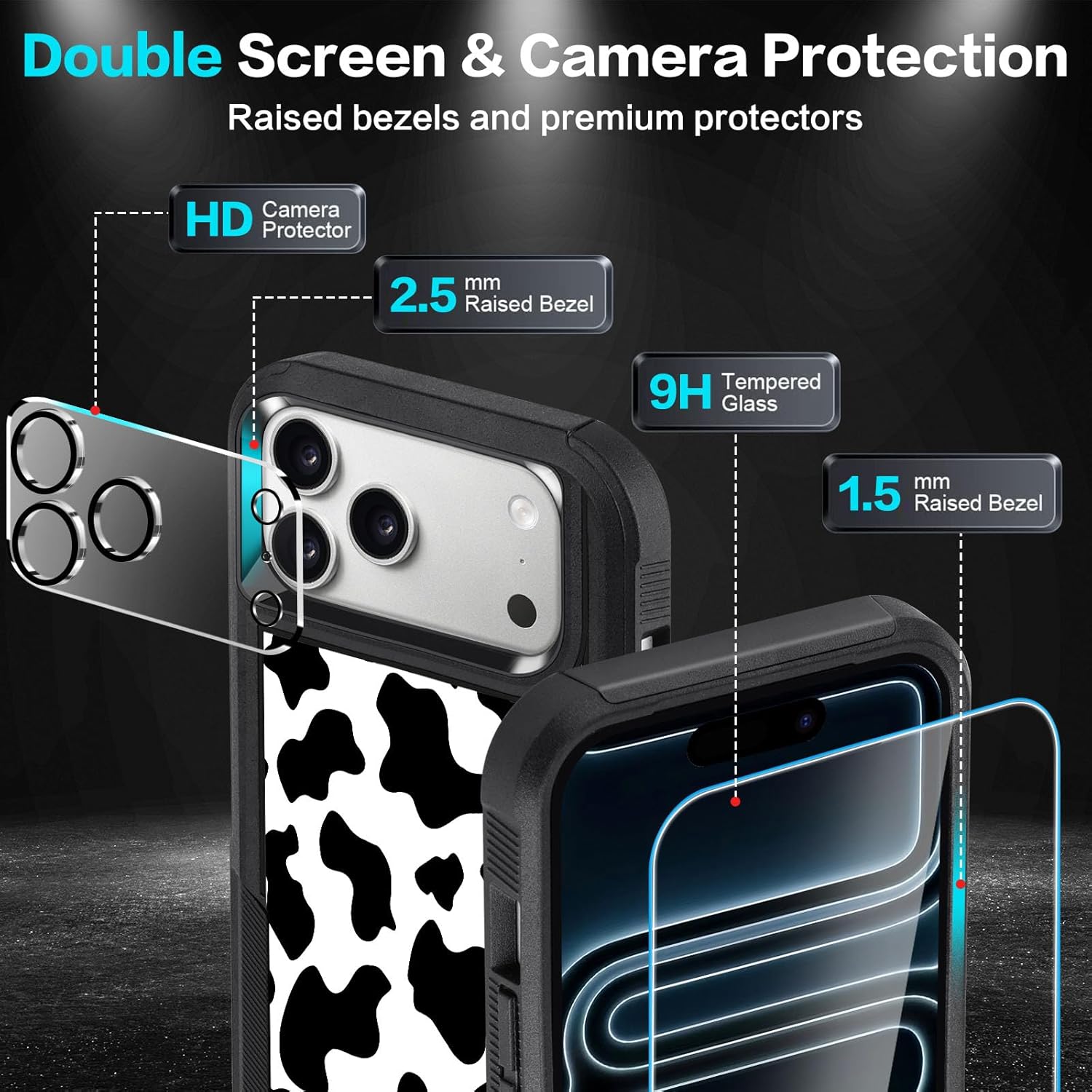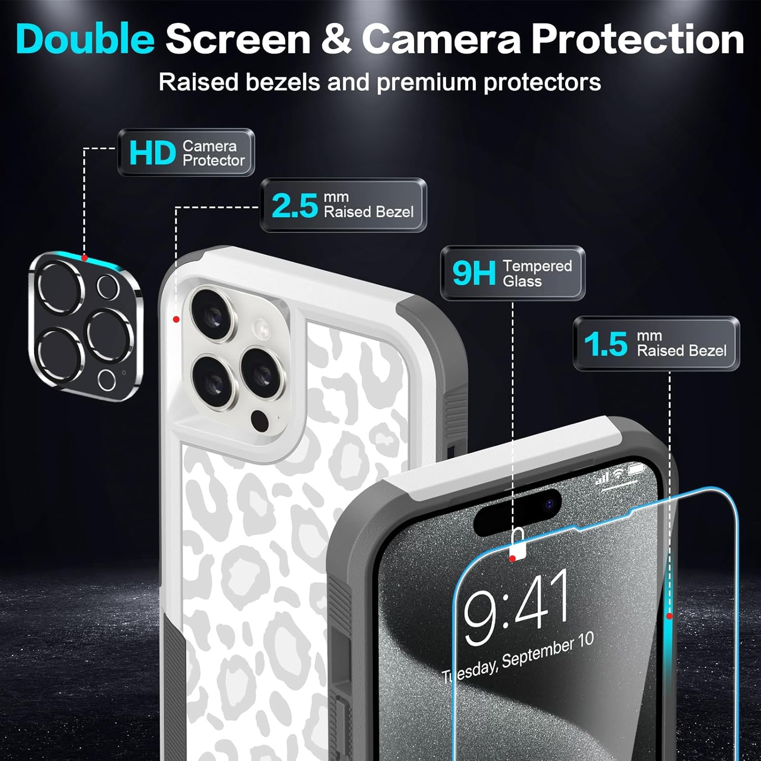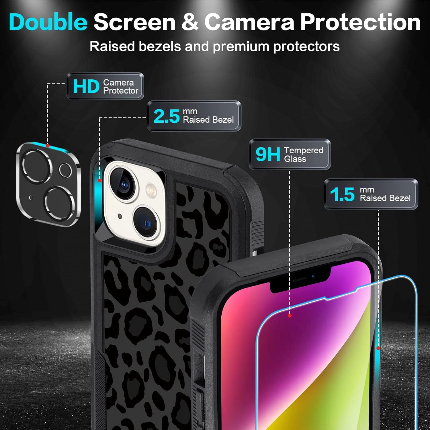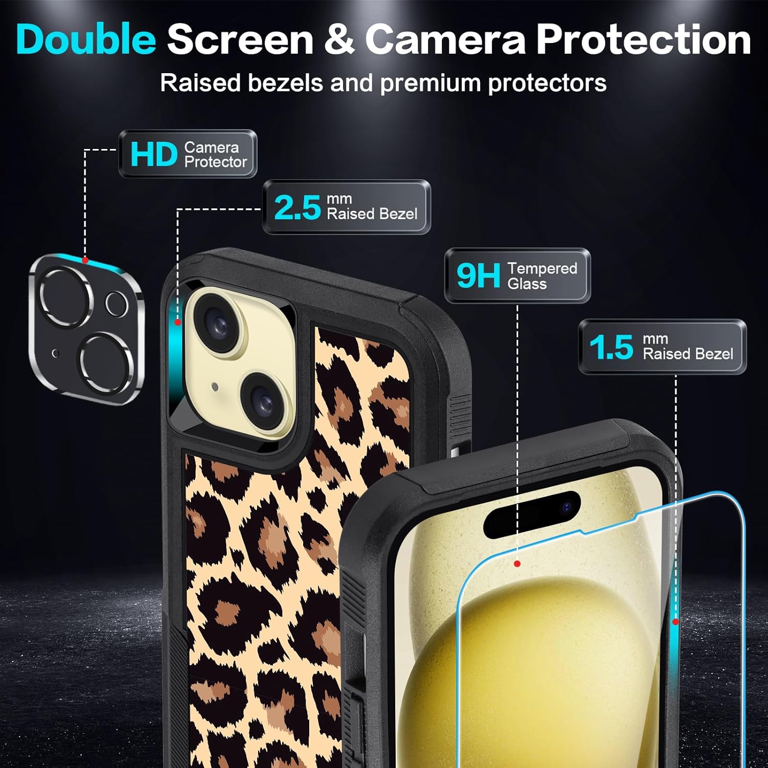 Designed for iPhone 17 Case, with 2 Pack Screen Protector + 2 Pack Camera Lens Protector,Heavy-Duty Tough Rugged Lightweight Slim Shockproof Protective Case for iPhone 17 6.3 Inch,Women Girls,Cheetah Leopard Pattern