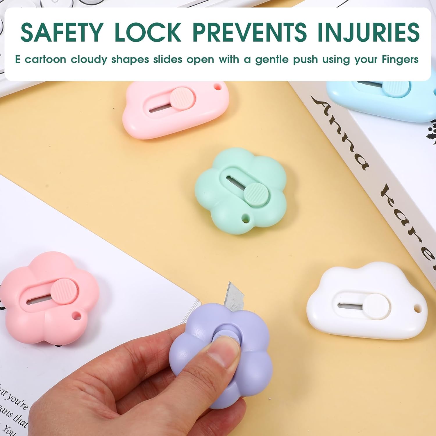 DESCRIPTION:Quantity: 6 piecesColor: blue, white, pinkStyle: cloud,flowermaterial: plasticPACKING LIST:6pcs Box Cutters