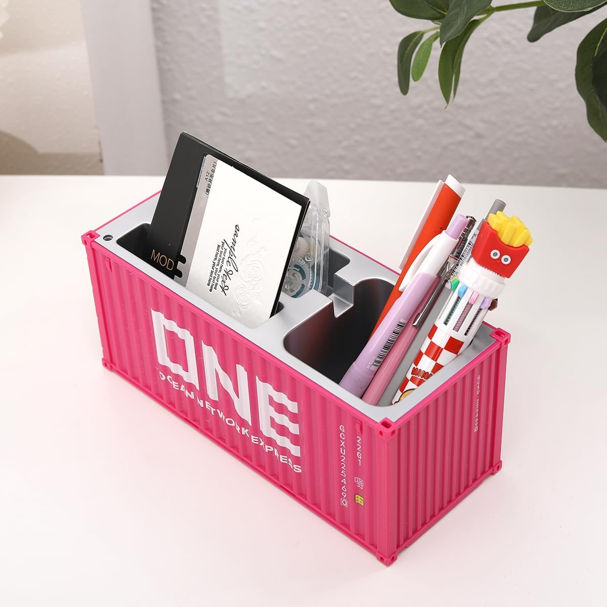 Desk Organizer Office Supplies Multi-function Shipping Container Storage Box Pen/Pencil,Business Name Cards Remote Control Holder Gray, Pen and Pencil Shipping Container Style Holders (Pink)