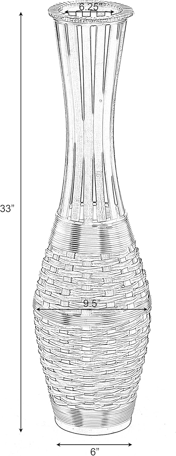 Elevate your home decor with our exquisite tall floor vase, designed to infuse timeless charm into any space. The sturdy espresso bamboo rope composition not only ensures durability but also adds a touch of sophistication. Embrace the beauty of tradition as this floor vase brings an antique allure to your living room, dining area, hallway, or any corner of your home. Its versatile design seamlessly fits into vintage or rustic country farmhouse themes, enhancing the aesthetic appeal of your surroundings. Made for both form and function, this vase serves as more than just a decorative accent. Its ideal size makes it perfect for the dining entryway, living room, or any open art space. Use it to display dried or silk decorative flowers, or let it stand alone as a captivating focal point in your decor. Transform your living space into a haven of fresh vibes and natural elegance with this designer floor vase. Whether you choose to insert dyed decor branches, dried long grass bundles, or artificial flower decorations, this vase invites an exotic atmosphere into your home. Add a finishing touch to your home furnishing and let the timeless design of this floor vase become a conversation starter for guests.