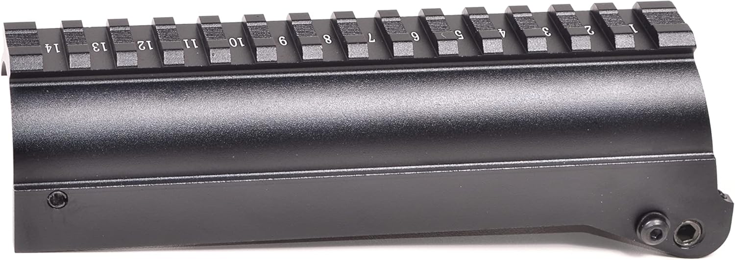 Easy to install over existing receiver. Good for SKS of all makes including Chinese Type 56. A lightweight scope mount with picatinny top rail right over the centerline of receiver when installed. The mount allows use of iron sight from the opening underneath and also the use of stripper clips to top load the magazine. The mount has a roll pin fixed in place at the front left side which rests against top side of receiver when properly installed. The mount is held by the replacement receiver cover retaining pin and locked in place using two large set screws with pointed tip at the back side of the mount. The riginal retaining pin is not detachable by design. A stud on the side needs to be removed from the pin or a key notch needs to be cut on the hole so that the pin is detachable. The top base rail has 14 ring slots marked with numbers which make it easier to set up eye relief and find more desired placement of scope or red dot sight on top of the receiver. The scope rail is compatible with weaver rings and also with red dot sights with Picatinny mount. The mount is of solid one-piece design and is machined from extruded aluminum alloy. Mounting screws are included with the unit. Rail type: weaver / picatinny Number of ring slots: 14 Top rail length: 6” Finish: Anodized matte black Weight: 5oz. Note: IMPORTANT: Apply BLUE thread Loctite on the threads of two pointed set screws first so that they stay locked in place. Follow installation instructions in the manual. When choosing a scope or sight for use with the mount, be sure to get one of short length to clear off the ejection port and the path of ejected brass to avoid damage by the brass hitting the front end of the scope. Will NOT fit SKS with aftermarket folding stocks