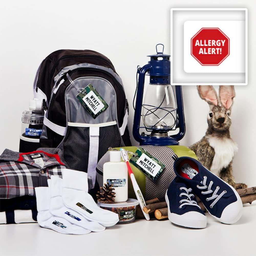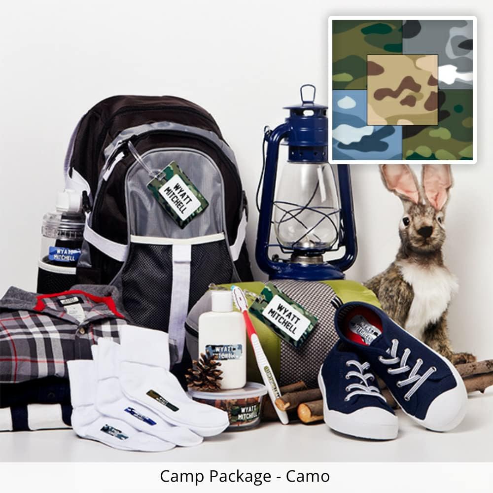Step away from the permanent marker! This package contains plenty of labels for everything your child brings to camp. Use Original Labels on water bottles and flashlights, Mini Labels on toothbrushes and pens, Shoe Labels on runners and flip flops, Stick-eez Clothing Labels on clothing with care-tags, Iron-on Clothing Labels on tagless clothing and Large Bag Tags on backpacks and duffel bags. All products in this package must have the same personalized text.Includes 151 labels and tags for $58.99.20 Original Labels - size: 2" x 3/4" | 50mm x 20mm50 Mini Labels - size: 2" x 1/4" | 50mm x 7mm14 Shoe Labels (7 pairs) 2" x 1" | 50mm x 26mm30 Iron-on Clothing Labels 2" x 1/2" | 50mm x 12mm35 Stick-on Clothing Labels - 7/8" x 7/16" | 23mm x 12mm2 Large Bag Tags - size: 3-3/8" x 2-1/8" | 85mm x 54mm high-performance vinyllaundry safewaterproofdishwasher safemicrowave safefridge and freezer safeweatherproofsuper-strong adhesivehigh quality, full-color printingscuff-prooftear-resistant