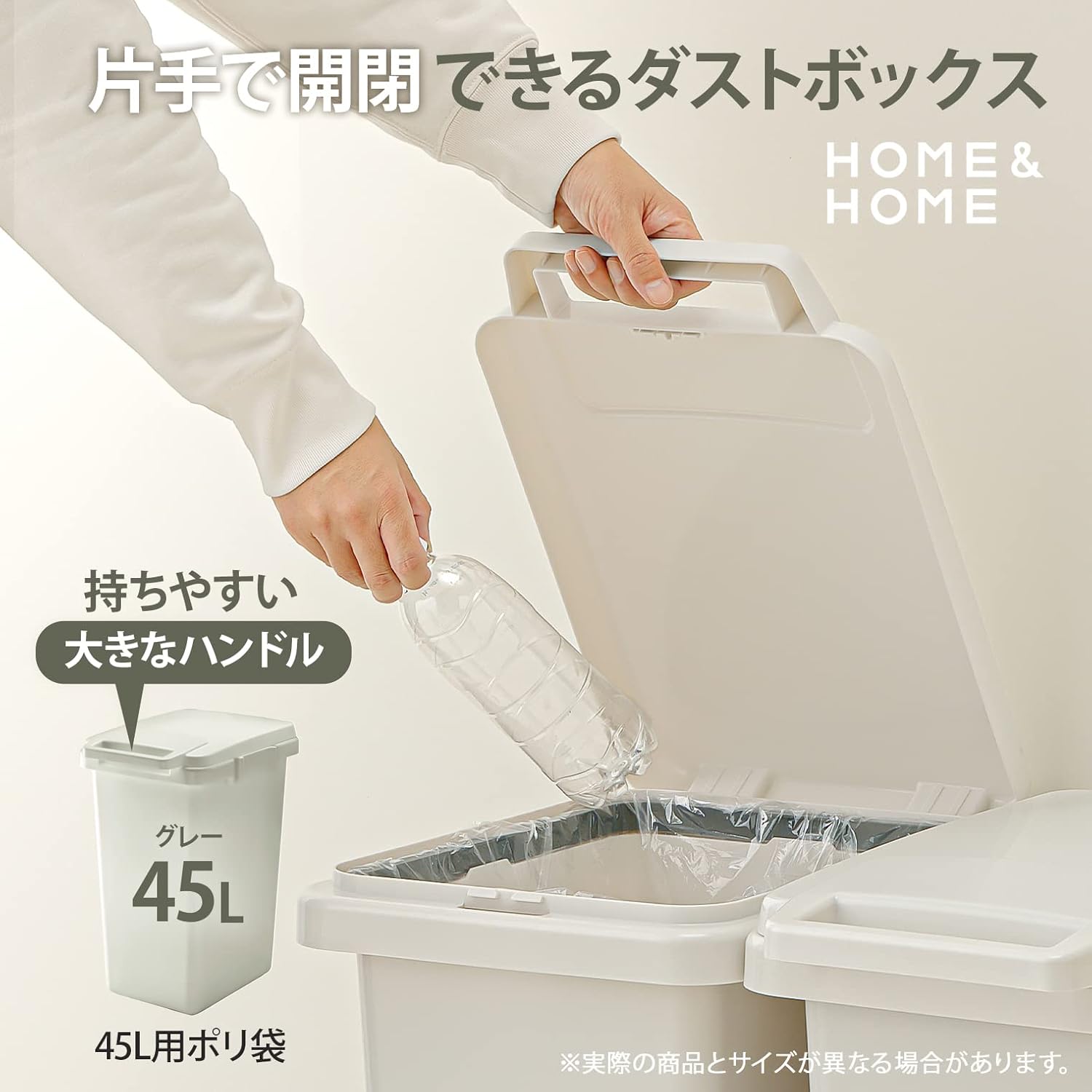 リス Squirrel 180500 Waste Bin Handle, Connected Dust, Box with One Handle, 1.6 gal (45 L), Gray, Home&Home 45J, Made in Japan